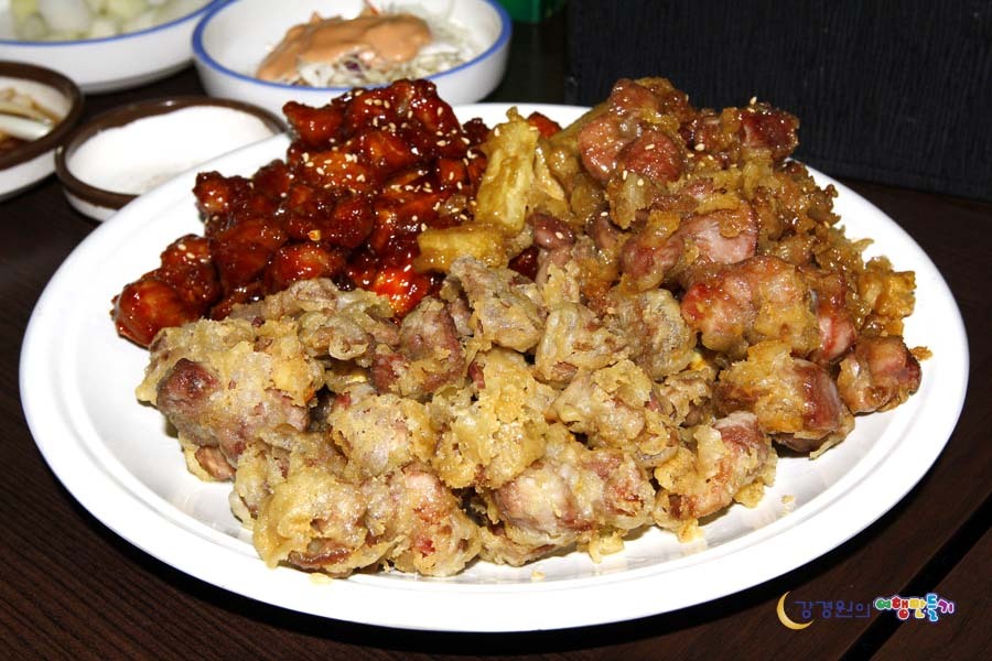 닭똥집 literally means "House of chicken poo" which itself doesn't encourage you to try eating it. But don't be mistaken because of the name, Dak Dong Jib is neither an intestine, neither a cloaka but a stomach. Chicken stomachs are often eaten as a snack when drinking alcohol. Can be served with various sauces or coated in breadcrumbs.